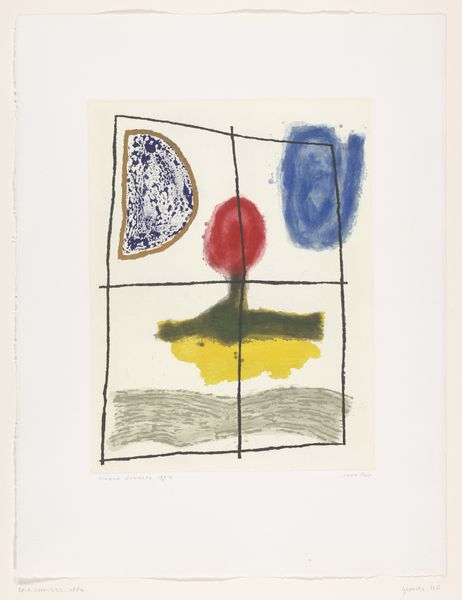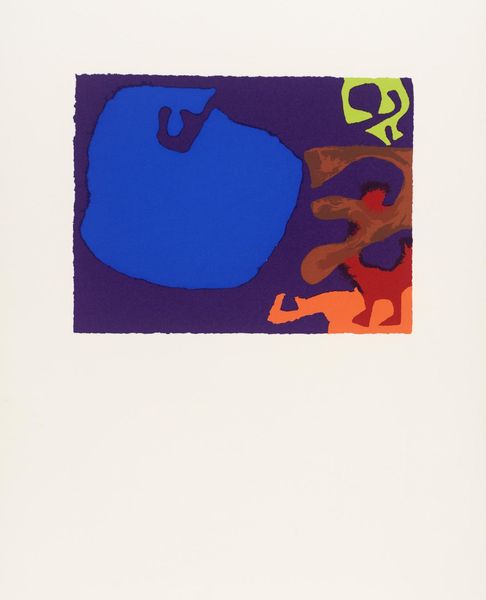 Will Barnet made this print, "Enfant," sometime in the twentieth century, and it's now hanging out at MoMA. What strikes me is the way Barnet mixes colors - that bold orange, a kind of electric backdrop for the cobalt blue and a slash of lime green. It’s like he's setting up a visual playground, right? The drawing itself has this lovely, searching quality, like the artist is feeling his way through the image. The blue lines are not precise, but scratchy and gestural. There’s a little circular form at the top, and it looks like it was drawn with a crayon. It suggests a head, a face, or maybe just the idea of a person. Look at the base of the figure, where the lime green meets that blue line. It creates a tension, a little vibration that keeps your eye moving. Barnet’s willingness to leave things open, to not quite resolve every form, connects him to artists like Joan Miró, who also played with abstraction and figuration, suggesting rather than defining. It's this kind of openness that makes art an ongoing conversation.