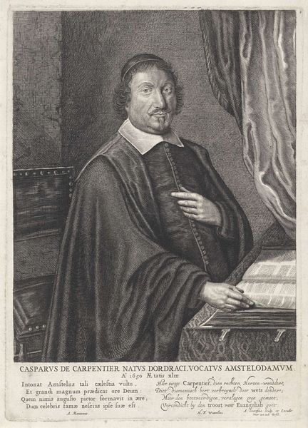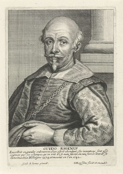 Editor: Here we have a print titled "Portret van kardinaal Giulio Raimondo Mazarino," dating roughly between 1602 and 1652. It appears to be an engraving, which gives it this incredible linear quality. The details in his robes are remarkable. What strikes me most is the evident labour involved in its creation – all those meticulously etched lines! What do you make of it? Curator: It's fascinating to consider the means of production. An engraving like this wasn’t simply about replicating an image; it was a translation of power and status into a commodity. Look at the materials – the paper, the ink, the metal plate used to create it. These were all resources embedded in a complex web of patronage and consumption. How does this accessibility challenge notions of Baroque art as inherently elite or exclusive? Editor: That's a really interesting point! I hadn't considered the wider distribution of printed portraits. Does the choice of engraving, as opposed to painting, make a statement about Mazarino’s desired image, then? Curator: Absolutely. Engravings allowed for wider circulation. So we see how portraiture served the political and economic aims of those commissioning it. By making it a printed multiple, it allowed those with power to literally disseminate images of themselves for social and political purposes. Notice, also, the inscription. How does that further bolster our understanding? Editor: The inscription certainly emphasizes Mazarino's title. I see how the print operates as both a work of art and a form of political propaganda, skillfully distributed. Thanks! Curator: And the production of these portraits allowed printmakers to establish workshops, where art, labor, and economic means converged. It gives one a lot to consider when seeing such works in a museum today!