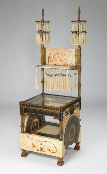 Editor: So, this wooden carving is called "Model of a Figurehead," made in 1847 by Rijkswerf Vlissingen. It's... smaller than I imagined a figurehead would be, almost like a maquette. I’m struck by the contrast of the dark paint against the bare wood. What should we be seeing here? Curator: This model gives us a glimpse into 19th-century naval culture and the politics embedded within ship design. Figureheads weren’t merely decorative; they were powerful symbols of national identity, projecting a nation’s power and aspirations onto the sea. What do you notice about the figure's pose, its attire? Editor: Well, the remaining colors make it appear noble with formal garments. But is that chipped paint symbolic, maybe of the changing tides of power? Curator: The "chipped" aesthetic is fascinating from a historical perspective. Are we looking at purposeful preservation or neglect? This decision frames how we, the public, engage with maritime history, reminding us that history is not static but curated. Think about the role of museums in shaping our understanding of naval history. Does exhibiting the "Model" glorify colonial power, or critique it? Editor: So, how do we, as consumers of this art, navigate this loaded context? Are we passively viewing a relic of a bygone era, or actively engaging with its legacy? Curator: Precisely. Museums aren't neutral spaces. By exhibiting pieces like this, institutions engage in a dialogue – sometimes intentional, sometimes not – about empire, trade, and cultural exchange. Examining the historical context and the museum’s curatorial choices is key. Editor: It's fascinating to consider how much context impacts our reading of what appears, at first glance, to be a simple nautical decoration. Curator: Absolutely. Reflecting on how cultural context influences the way we perceive this wooden figurehead teaches us as much about the artwork as it does the institution that chose to put it on display.