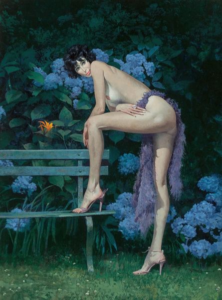 Here we see Robert McGinnis’s ‘Nude by a Bench’, though the date of its creation is not known. McGinnis started his career in the 1950s, an era when the male gaze heavily influenced the portrayal of women in art. The artist’s approach in this piece invites contemplation. The nude woman is positioned in an ambiguous setting, on a bench with classical motifs. Her slightly averted gaze and relaxed stance give her agency in her own representation, moving away from traditional objectification. But can we really say she has agency when the artist dictates her pose? This image offers an opportunity to reflect on the complexities of representing women in art and challenges us to question the power dynamics at play. The work is evocative and personal, encouraging us to consider the cultural narratives around femininity that shape both the artist's work and our interpretation of it.