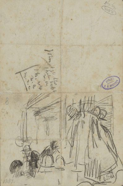 Curator: This page, titled Zwei bezeichnete Skizzen, or "Two Sketches with Inscriptions," comes to us from the hand of Max Beckmann. The medium looks to be a combination of pencil and ink on paper. Editor: The immediate impression I get is one of fleeting, anxious energy. It's less about polished depiction, and more about the urgent capture of something seen or felt. What do you see materially in this work? Curator: I notice the page itself: its slightly yellowed tone suggests age and use. The graphite, varied in pressure, tells us about the artist's hand—his changing focus. There's something beautiful in that direct translation of thought to paper. Considering Beckmann’s engagement with German Expressionism, how does that influence your interpretation? Editor: Given that backdrop, these aren't simply casual observations. The raw, fragmented quality speaks to the disquiet and social anxieties prevalent in Germany at the time. Even these fragmented figures feel charged with meaning, reflecting the human condition amidst chaos and turmoil. How do the inscriptions interact with the visual elements in this work? Curator: They seem to serve as annotations, or perhaps attempts at identifying what's being represented. That they're so integrated suggests that writing was integral to Beckmann’s process. Editor: Exactly, and if we see the labor of sketching itself, then the writing becomes part of the artistic process rather than external labels. Are we meant to see this page in relation to other sketches? How might that effect our reading? Curator: These sketches exist as part of a larger series; this hints at a broader creative output with possible links in theme and style across these drawings. We see an active exploration of form and figure—all revealing more of his world, which itself was in constant flux. Editor: So, instead of neat conclusions, it's about engaging with these gestures and inscriptions. Thank you! Curator: Indeed—it's about embracing the creative process itself.