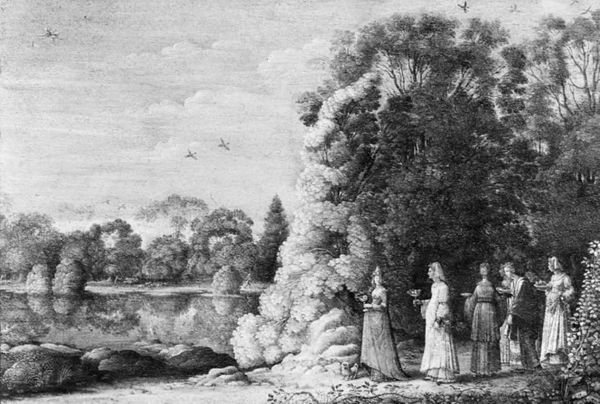 Orest Kiprensky captured John the Baptist baptizing people using traditional painting techniques of the 18th and 19th centuries. The monochrome palette offers a window into the artist's process. We can appreciate the qualities of line and form, particularly how the artist layers watercolor washes to create depth and shadow. Notice how Kiprensky uses the fluidity of the watercolor to give life to the figures and the landscape, evoking a sense of movement and spiritual awakening. In the making of this artwork, the artist engaged with long-standing traditions of religious painting. But also with the relatively recent availability of manufactured art supplies, which allowed for a newfound freedom of handling. Consider the labour involved; the artist's skilled hand brought the scene to life, but also relied on the often-overlooked work of those who processed raw materials into paint. By looking at the materials and methods employed by the artist, we can better understand the social and cultural contexts of the time, challenging any perceived boundaries between fine art and the work involved in its creation.
