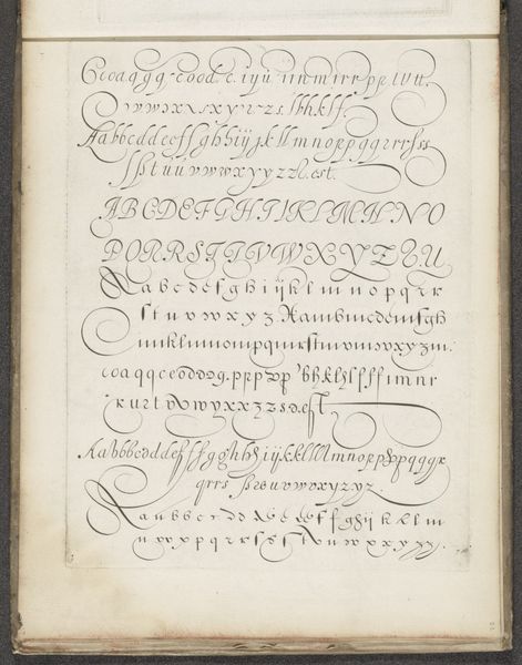 Gesina ter Borch made this sheet of calligraphy with iron gall ink on paper. The traditional method involves crushing oak galls, mixing them with iron salts, and then adding a binder. Iron gall ink has a deep, rich color when first applied, but it fades over time to a warm brown hue, as we see here. The quality of the writing depends on the quality of the ingredients and the skill of the scribe. Ter Borch skillfully varies the pressure on her quill to create lines that swell and diminish. The act of writing, even copying letters, was considered a valuable skill for women during the Dutch Golden Age, demonstrating education, refinement, and patience. Consider the time and labor involved in producing this work: from preparing the ink, and carefully forming each letter. Ter Borch's rendering is a testament to the enduring human impulse to master materials. By recognizing the value of craft, we can understand the cultural and social contexts in which the artist lived.