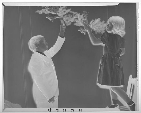 Editor: This photograph by Jack Gould, simply called "Untitled (young couple dancing the Jitterbug)," captures such energy! It makes me want to swing dance. What strikes you most about it? Curator: The sheer joy, wouldn't you say? The way the light almost vibrates around them, as if the camera itself is caught up in the rhythm. It's more than just a dance; it's a burst of life, a snapshot of pure, unadulterated fun. What do you think they are feeling at this moment? Editor: I think they are feeling joy. I didn't see that at first but now I do! Thanks! Curator: My pleasure.