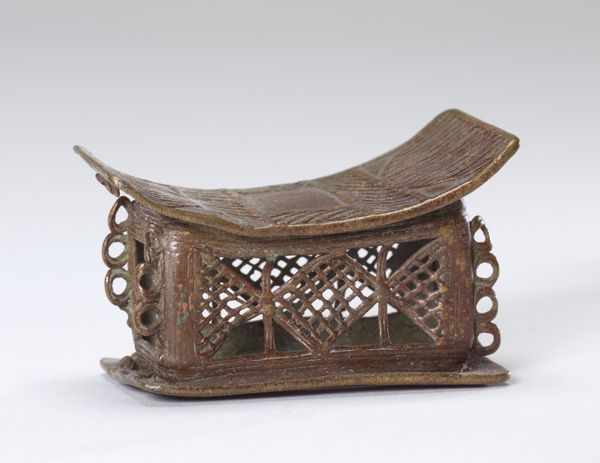 Editor: This is a carved wooden box with a cover, made by the Kuba people sometime between 1900 and 1925. The lid is particularly striking, featuring a face. I’m curious about its semi-circular form and what purpose the shape might serve beyond mere containment. What do you see in this piece from a formalist perspective? Curator: The immediate visual impact arises from the interplay between the geometric simplicity of the semi-circular form and the complexity of the carved details. Notice the repetition of triangular patterns on the lid’s surface, contrasting with the smooth curve defining the face. The artist masterfully balances negative and positive space. Consider the role light plays; how does it accentuate the carved textures, creating depth and shadow? Editor: That’s fascinating. The way light and shadow emphasize the carved details escaped me initially. It makes the face almost leap out. Is there a significance to the type of wood that’s used, or the method of carving? Curator: Absolutely. While identifying the specific wood type requires specialized analysis, the choice would undoubtedly have been deliberate, based on its workability and symbolic associations within Kuba culture. Furthermore, the precision and control evident in the carving indicate a sophisticated understanding of the medium. The consistent depth and clean lines contribute to the object's overall formal harmony. Can you see how the textural contrast contributes to this harmony? Editor: Yes, the contrast really enhances the overall design. It’s incredible how much the textures affect my perception of the sculpture. Curator: Precisely. It is through these formal considerations – the shape, the textures, the carving technique, the material itself – that the work achieves its aesthetic power. This intense arrangement of visual and tactile qualities conveys an undeniable sense of design intention. Editor: This has opened my eyes to appreciate details I previously overlooked. Thanks to you, I better recognize and respect what the artist was likely thinking during its construction. Curator: My pleasure. Close attention to the material, technique, and form repays one’s curiosity, as does allowing yourself an engagement of visual discovery.