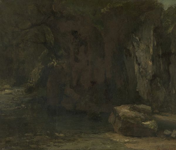 Ladislav Mednyánszky made this oil painting, Forest Interior with a Brook, sometime between the late 19th and early 20th century, using a palette that's basically greens and browns. It’s like he’s building the scene from layers of atmosphere. The texture here is really interesting, because you can see how the paint is applied in short, choppy strokes, especially in the foreground. It’s not about smooth blending but about the physicality of the paint itself. Look at that band of light cutting through the middle, like a quick slash of yellow. It’s almost violent, but it brings the whole painting to life. Mednyánszky’s later landscapes become even more abstract. You can see him pushing further into this idea of paint as its own language. It makes me think a little of Courbet, but with a more mystical, internal vibe.
