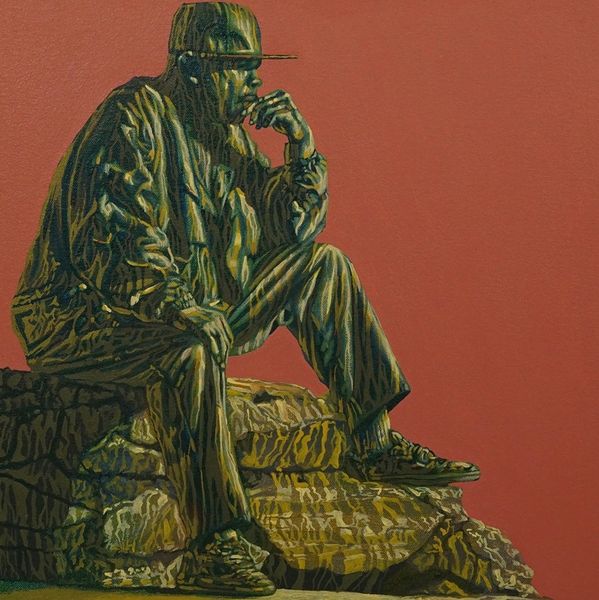 Editor: Here we have Dan Graziano's "Low Down," an oil painting. The impasto technique really jumps out; you can almost feel the thickness of the paint. The textures are striking, giving it a somewhat raw energy. What do you make of the visible brushstrokes? Curator: The very physicality of those brushstrokes, the obvious labor involved in applying that paint, tells us something. It pulls us away from any illusionism and insists on the artwork as an *object*, made of *stuff*. It denies easy consumption; it demands we consider its production. How do you think this emphasis on material reality challenges our typical understanding of portraiture? Editor: That's an interesting way to look at it. Most portraits aim to capture a likeness or personality, right? But here, the focus seems less on the individual depicted and more on the *act* of painting itself. It also seems that traditional skill is forgone in place of materiality. Curator: Precisely. The portrait isn't about illusionism. It uses materials—oil paint, brush, canvas—in a way that refuses to hide the making process. It embraces the means of production. The raw and unfinished character reminds us of other art forms tied to labor. It evokes the energy of process. What impact do you think it might have on a viewer to confront such unvarnished, unromanticized creation? Editor: It makes me question the traditional art world, almost democratizing portraiture, focusing on the artist's act, but what it could *become* to be high art with time... It highlights its process over conventional skill. Curator: And that democratization, the bringing down of perceived barriers of 'high art' can open a viewer to a very different understanding. Instead of seeing something ethereal, untouchable, we encounter material, action, *work*. Editor: Definitely given me a new appreciation of the artwork itself! Curator: For me as well! Focusing on process and the labor adds great complexity.