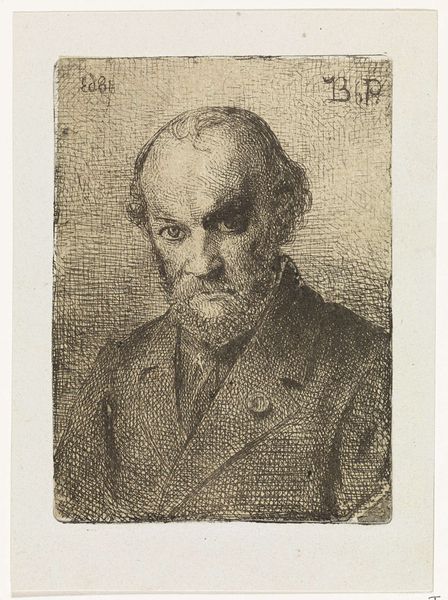 This is Frederik Hendrik Weissenbruch's portrait of Jan Weissenbruch, made with etching on paper. Etching involves drawing into a prepared ground, and then using acid to bite away the exposed areas. The fine lines and subtle tonal variations we see here are testament to the artist's skill with this technique. The quality of the paper also matters, with its absorbency influencing the ink's spread and the overall crispness of the image. Think about the labor involved in creating an etching like this. From preparing the metal plate and applying the ground, to carefully drawing the image and controlling the acid bath, it's a highly skilled and time-intensive process. The resulting print, however, can be reproduced multiple times. This opens questions about the relationship between manual labor and artistic production, especially in a time when mechanical reproduction was becoming increasingly prevalent. Considering the materials and processes behind this etching helps us appreciate the artistry involved, and also prompts us to think about the broader social and economic context in which it was made.