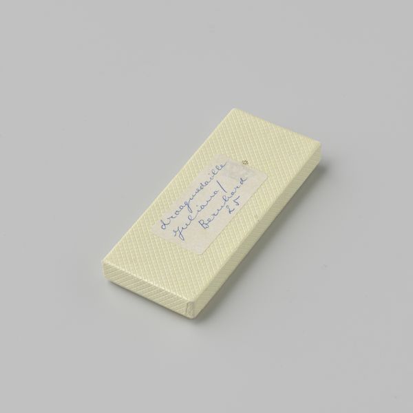 Editor: Here we have "Doos voor foto's van fotograaf W.G. Kuijer & Zonen," dating from 1884 to 1906. It’s an interesting object, really just a box designed to hold photographs. The ornate design makes it feel more precious than just simple packaging. What do you see in this piece? Curator: I see a powerful testament to the material conditions of photographic production and consumption at the turn of the century. This isn’t just a box; it's a container manufactured to house and protect the *means* through which photography entered into the lives of ordinary people. Consider the labor involved. Do you notice the printing details? Editor: Yes, there’s definitely an effort at branding here, not just plain packaging. Curator: Precisely! It speaks to a shift in how photographic services were being marketed. The box highlights photography's evolving role – transforming from a niche craft to a more accessible consumer product. It draws attention to both artistic aspiration and material practicality. How do the details of the box material alter your perception of the photographic contents? Editor: It gives more prestige to something that could otherwise be tossed. Almost like today's "unboxing" phenomenon... the packaging enhances the user experience and transforms mundane items into collector’s items. Curator: Exactly! And that elevation is crucial to understanding how photography entrenched itself in the everyday. Its value derived not only from the image itself, but also its presentation and the very tangible nature of its container. It's a powerful reminder that what we consider art isn't divorced from the process, labor and materials of making it. Editor: So it's not just about the art of photography, but the art of selling it? Curator: Indeed! This box encourages us to interrogate those intertwined relationships, a new lens for appreciating historical photography. Editor: I will definitely look at old packaging in a new way now!