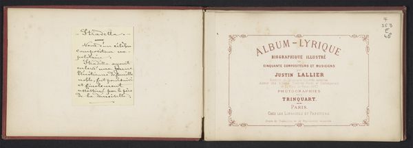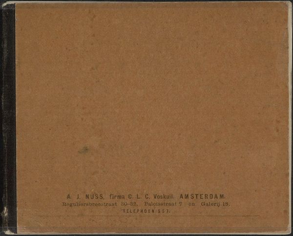 This album with landscapes, animals, and people from Java and the Moluccas was compiled by Adrianus Johannes Bik in the 19th century. At first glance, you will notice a symmetrical design. The album cover features a deep red hue that sets a somber yet inviting tone. The texture of the cover shows signs of age, adding depth and character to the object. The central diamond shape, neatly bordered with a thin line, contains text in an old typeface. This typography evokes a sense of history and tradition, fitting for a collection of sketches and drawings documenting distant lands. The diamond is set against the textured red background, which creates a striking contrast. This contrast draws the eye and organizes the composition. The wear and slight imperfections on the cover offer a visual echo of the album's contents. It reminds us of the delicate balance between preservation and the inevitable marks of time.