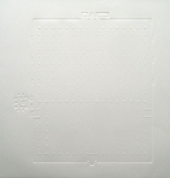 Richard Artschwager made this artwork, titled Location, using simple materials: wood and paint. The artist created several of these ‘location’ markers; the first ones were made from solid wood, but later became Formica-covered. These minimalist forms seem to hover on the wall, but they are actually fixed in place. Artschwager was interested in the way that objects could occupy a space and draw attention to their surroundings. Think of them as visual punctuation marks, highlighting points in a room. What's fascinating is that Artschwager blurs the lines between furniture, sculpture, and architecture. His art isn't confined to the pedestal or the wall; it merges with the everyday environment, asking us to reconsider how we perceive the spaces we inhabit. By focusing on the ways of making, and the means of production in which objects and artworks are created, Artschwager challenges traditional distinctions between high art and craft.