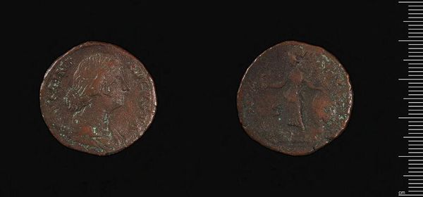 Editor: So, this is a cast coin from Samos under Philip I. It feels like holding a tiny, weighty piece of history. What strikes you about it? Curator: Isn't it wonderful? The way the images are pressed into the metal, like fleeting thoughts made permanent. And it's not just a coin; it's a mini-sculpture, a political statement, a piece of ancient gossip all rolled into one. The verdigris whispers stories of trade routes and power struggles. Editor: So, beyond just the basic imagery, what stories do you think this coin might be trying to tell? Curator: I imagine the weight in someone’s palm, a tangible connection to the empire. It makes you wonder, doesn’t it, about the everyday lives intertwined with this little disc of power? What do you think it might have purchased? Editor: That’s a lovely perspective. It’s fascinating to think about its journey and the hands it passed through. Curator: Exactly! It makes you question what traces will we leave behind.