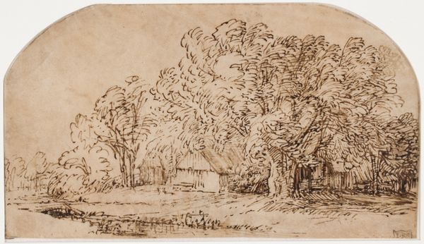 P.C. Skovgaard made this drawing with brown ink on paper; it depicts cows by a forest lake. It is a study that utilizes common materials, yet, the grid that the artist has sketched in is a guide to transfer this drawing onto a larger canvas. The drawing is made using hatching techniques with a quill, creating tonal variation and depth through the density of the lines. Skovgaard uses the linear quality of ink to capture the tranquil scene, emphasizing form and composition. In contrast to Skovgaard's paintings, the immediacy of the material is evident in the artist's creative process. The labor-intensive process of painting is simplified. By choosing conventional drawing materials, Skovgaard blurred the boundaries between the preliminary study and the finished artwork. Appreciating the material qualities and creative processes offers a deeper insight into Skovgaard's artistic vision.