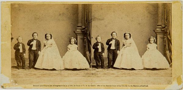 This is André-Adolphe-Eugène Disdéri's photograph "Taglione," a remarkable early example of serial portraiture. The composition, arranged in a grid, presents multiple views of the subjects, each pose carefully staged. The limited tonal range of the sepia print flattens the image, emphasizing the constructed nature of the photographic space. Disdéri's innovative use of the carte-de-visite format allowed for mass production, democratizing portraiture. Yet, this seriality also raises questions about identity and representation. The subjects, framed by neoclassical props, appear both individualized and standardized, caught between the desire for unique expression and the constraints of social convention. Each view offers a slightly different angle, yet the repetition underscores the performative aspect of posing for a camera. Ultimately, the photograph destabilizes the idea of a singular, fixed identity. Disdéri’s “Taglione” uses the reproducibility of photography to explore the fluid boundaries between public image and private self, challenging us to consider how identity is constructed through representation.