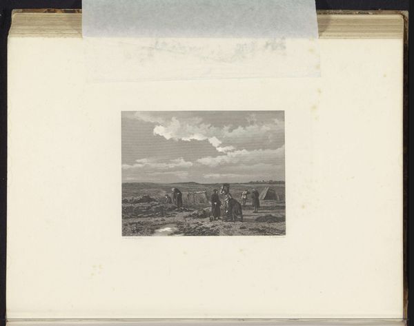 Christiaan Lodewijk van Kesteren’s print captures a Neolithic dolmen, or "Hunebed" as it's known in the Netherlands. The composition emphasizes a low, panoramic view, placing the massive stone structure within a vast, open landscape under a sky heavy with clouds. The monochromatic palette and meticulous detailing evoke a sense of timelessness. The artist employs a formal, almost archaeological approach. The dolmen, centrally located, anchors the scene. Its rough, megalithic form is contrasted with the flat, receding plane of the landscape. Van Kesteren seems interested in the interplay between nature and human construction. The dolmen, a symbol of ancient human activity, is set against the seemingly infinite backdrop of the natural world. The print's aesthetic value lies in this tension. It reflects a structural opposition: the artificial versus the natural, the finite versus the infinite, the known versus the unknown. The artist prompts us to contemplate our place in the continuum of time and space. Ultimately, the print invites us to consider the enduring dialogue between humanity and its environment.