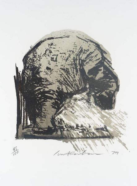 Curator: What strikes you first about this print, the "Black Rhinoceros" by Andy Warhol, completed in 1983? To me, it's fascinating how Warhol continues to capture a subject using the screen-printing medium, while exploring a cause, like species preservation. Editor: It's got such a compelling melancholy. I feel this profound sadness radiating off of it. Maybe it's the contrast of the bright peach background with the rhino's heavy features, almost caricaturized... I can’t tell. It feels, well, weighted. Curator: Indeed, and I think that feeling extends to the rhino’s representation, a symbol of endangerment. You can feel how the bold colors, teal and cobalt for example, attempt to reanimate a creature, that during the creation of this artwork in the early 1980’s, was dealing with issues of near extinction due to poaching and habitat loss. Editor: I get that tension, totally. It’s like…we're splashing this iconic creature with a vibrant palette as if to declare its worth. Are we saving it? Is it about to disappear completely? The whole thing feels laced with both affection and dread. That jagged red line snaking around the horn makes it seem vulnerable and raw somehow. Like a neon sign blinking ‘Fragile.’ Curator: I couldn’t agree more. In examining it from the stance of conservationism, it raises many questions of the role artists, especially prominent artists such as Warhol, play within those critical dialogues. Does art change policy? Editor: Exactly. It becomes more than a picture; it becomes an elegy, maybe even a call to arms dressed up in Warhol’s cool aesthetic. A pretty picture masking some scary realities. Well, food for thought for the rest of the afternoon. Curator: I appreciate your poignant reading of this work. Thanks, as always, for your thoughts.