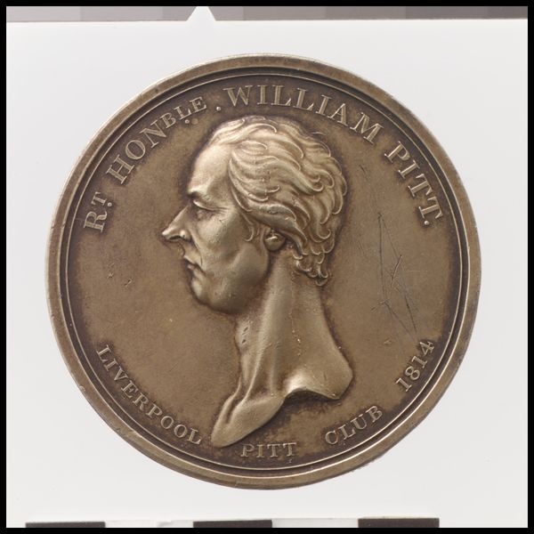 Editor: This is a bronze portrait medal of Louis-Antoine Garnier-Pages, made by Daniel Jean-Baptiste Dupuis in 1877. The profile seems quite severe; the subject seems formal, very controlled. What strikes you when you look at this work? Curator: Beyond the likeness, it’s fascinating how medals like these served as symbols of achievement and remembrance. Bronze, with its inherent durability, links itself to ideas of permanence. Note the Roman numerals—MDCCLXXVII, 1877—and the man’s name encircling him. How does the act of enclosing his image and identity shape our perception of him? Editor: So, it's not just about representation but memorializing someone in a specific way? Curator: Precisely. Consider how portraiture, especially in a round format, echoes ancient coins bearing rulers' images. The symbolism here intertwines ideas of political power, lasting legacy, and civic virtue. This layering makes it such a culturally rich object. Editor: It's almost like he is being cast in history, in bronze. Curator: Indeed! Medals were often commissioned to commemorate significant events or figures. What cultural narratives are being solidified here? What does his formal attire, the sharp lines of his profile, tell us about the image they wanted to project? It also forces one to consider, what images and figures do we memorialize today, and in what form? Editor: So much to unpack in such a small object! It gives a lot of insight to that particular period and who they chose to represent it. Curator: Absolutely. Visual symbols are vessels of collective memory. Examining pieces like this, allows us to recognize the dialogue between past and present.