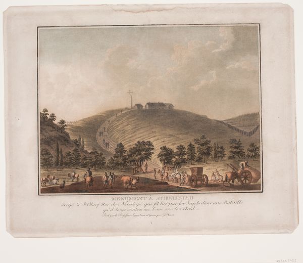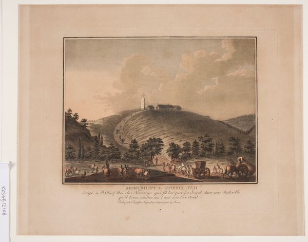 Curator: Welcome. We're standing before Jakob Matthias Schmutzer's "View of the Park of Neu-Waldeck from the Chinese Pavilion, looking South," created in 1782. It’s an engraving, offering a glimpse into landscape design and aristocratic life in the late 18th century. Editor: My initial reaction? It's incredibly...contained. Everything feels so ordered, manicured. The symmetry almost suffocates the scene. I mean, even the clouds look politely arranged. Does anyone really live like this? Curator: This idealized depiction reflects the prevailing aesthetic of Neoclassicism. The print showcased the wealth and cultivated taste of Marshal Count de Lacy, who owned the Neu-Waldegg estate. Notice how the figures in the foreground appear to be admiring the very vista that we are observing in the engraving itself. It underscores the constructed nature of the landscape. Editor: It feels like a stage set for the elite. I’m curious about the “Chinese Pavilion” mentioned in the title. Was that a literal pagoda somewhere? Seems an odd thing for Neoclassicism. Curator: The Chinese Pavilion represents the vogue for Chinoiserie, which was quite popular at the time among European aristocracy. These exotic touches signified global awareness, refined tastes, and, naturally, access to international trade. Editor: I suppose it's not that different from collecting souvenirs, really, just…on a grander, architectural scale. But back to the landscape itself, even those dark areas are controlled! Curator: Absolutely. Even the so-called wilderness here is framed and shaped to project a certain image of power and enlightened control. It’s less about natural beauty, perhaps, and more about imposing a particular order onto nature. It illustrates the values of its owner and the epoch in which it was commissioned. Editor: Looking closer at those figures, I get the sense that they're performers, playing roles within this composed scene. Their poses, the neatness… are they genuinely at ease or merely presenting themselves to be viewed? Curator: Precisely. The people populate, give scale to, and authenticate the view—but are not to be seen as anything beyond a piece of the picturesque. Editor: I see this image as an artifact, like a preserved moment of performance more than a captured natural landscape. Well, thank you for setting the scene! It has been eye-opening, I am grateful for being offered your understanding. Curator: My pleasure. It’s through viewing such works with inquisitive eyes that we may glean a better grasp of history.