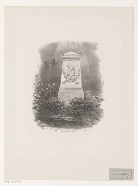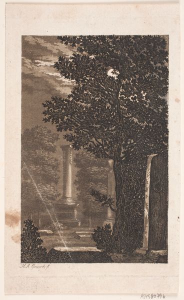 J.F. Clemens made this print, “Mindestøtte for forfatteren Hans Vilhelm Riber,” using etching. The etching process involves covering a metal plate with a waxy, acid-resistant layer, then scratching away lines to expose the metal. The plate is then dipped in acid, which bites into the exposed lines, creating grooves. Ink is applied to the plate, filling these grooves, and the surface is wiped clean. Finally, paper is pressed onto the plate, transferring the ink and creating the print. Here, Clemens uses the etched line to create a detailed, commemorative landscape. Notice the monument dedicated to the writer Hans Vilhelm Riber, surrounded by trees and what appears to be a carefully planned garden. The fine lines create a sense of depth and texture, especially in the foliage and the architectural details of the monument. The process itself allows for multiple copies to be made, suggesting a desire to widely disseminate this memorial image. This reproductive capacity is essential to the work’s meaning, bringing attention to the importance of patronage, labor, and the economics of art production at the time.