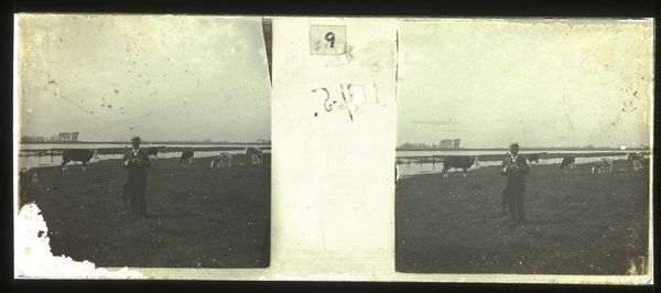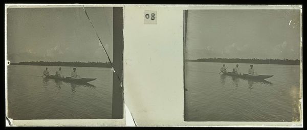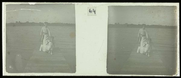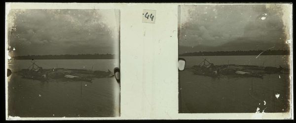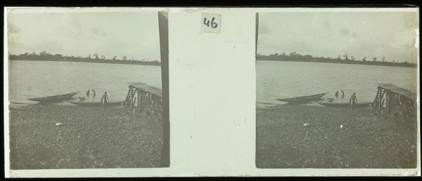 Curator: This is "Duiken van de steiger van plantage Accaribo," made sometime between 1913 and 1930 by Theodoor Brouwers, currently held at the Rijksmuseum. Quite a compelling image, wouldn’t you agree? Editor: Yes, the grainy texture creates a sense of immediacy, almost like a found photograph. The high contrast amplifies the drama of the diver’s silhouette against the water. Curator: Observe the composition; the diver’s form creates a dynamic diagonal line, juxtaposed with the stable, horizontal lines of the pier and distant shoreline. There’s a satisfying tension between movement and stillness. Editor: Precisely. I am curious about the pier construction itself. What locally sourced wood was used for the Accaribo plantation pier, and how did it shape the experiences of labor there? Consider how its materiality may have afforded or hindered their lives. Curator: A fascinating question. But let's consider the photograph itself as an object. The choice to render the scene in muted tones, predominantly grayscale with subtle gradations, emphasizes form and texture above local color or emotional intensity. Editor: True, but consider what remains unseen. What labor enabled this photograph? Did those diving off the pier work on the Accaribo plantation? What access did Brouwers have? Curator: I would also add, look at the lines of the pier stretching into space! Such effective pictorial organization. Editor: Agreed. I'd further argue that this scene embodies resistance; people diving off a pier perhaps denied them otherwise. Or children stealing a few free moments between demanding tasks. Curator: I appreciate your contextual understanding, and the artist has succeeded, even decades after this image was created, in capturing a moment in history. Editor: Yes, for me the magic lives in considering what materials made that moment visible for future audiences, including ourselves.