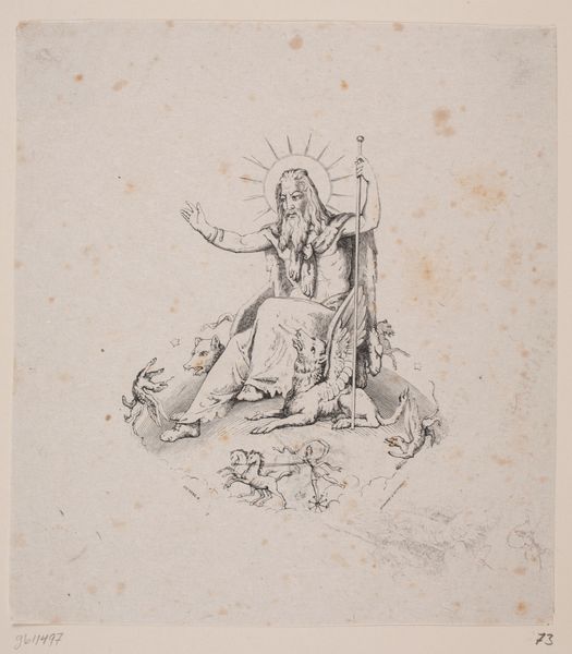 Auguste Numans made this lithograph, "Koninklijke attributen" or "Royal Attributes," using a printmaking process rooted in the skillful manipulation of stone and ink. Lithography, a process developed in the late 18th century, allowed for a newfound fluidity of line. The artist would have drawn directly onto a smooth limestone surface with a greasy crayon, then chemically treating it so that ink would adhere only to the drawn areas. When pressed to paper, the design transfers, creating a print. The relatively simple materials belie the sophisticated technique required. The richness of tone and detail, especially in the depiction of the elaborate chair, flag, and armor, suggest Numans’ mastery of the medium. He coaxed subtle gradations and textures from the stone, creating the illusion of depth and dimension. Printmaking democratized image production in the 19th century, making art more accessible, but also raising questions about originality and artistic labor. The lithographic print exists as both a work of art and a commodity, blurring the lines between artistic creation and commercial production.