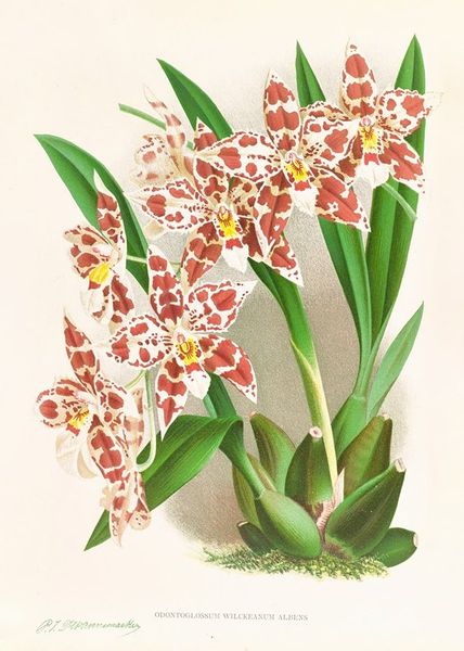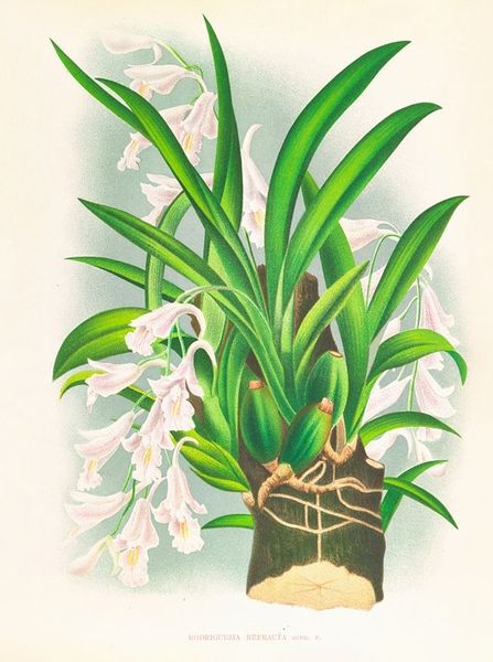Editor: So, this is Jean Jules Linden’s *Aerides maculosum*, a watercolor illustration dating between 1885 and 1906. It’s such a precise rendering, and the leaves look incredibly vibrant. What draws your eye when you look at this work? Curator: It's the implied labor, really. Consider the conditions: late 19th century, the rise of industrialized printing yet here we have meticulously hand-painted illustration. This orchid becomes a commodity viewed through a scientific lens. It speaks volumes about colonial botanists, expeditions, and the movement of plants. Editor: That’s fascinating! So, the painting is about more than just the flower itself? Curator: Precisely. It's about the entire network surrounding it. Who commissioned this? For what purpose? Was it purely scientific, or was there an element of prestige involved? Watercolour itself—its accessibility and reproducibility—plays into a democratisation of scientific knowledge, yet contrasts with the elitist associations of orchid collecting at the time. Editor: I hadn't considered that tension. The accessibility of the medium versus the exclusivity of the subject. Curator: Indeed. Notice how the focus is almost clinical in its exactitude. This isn't romantic flower painting; it’s documentation, packaged within a system of power dynamics of trade, collecting, and knowledge production during that era. What seems purely botanical is entwined with political and social undertones. Editor: I never would have thought of it that way, but understanding the social context and production helps me to see it in a whole new light. Thank you! Curator: My pleasure. Reflecting on the labor and social conditions opens our eyes to untold aspects of its production and meaning.