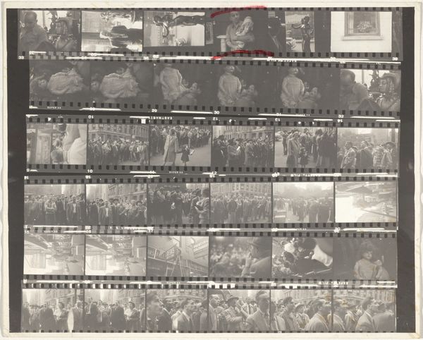 This is Robert Frank’s "Early New York City no number", a photo made with, well, a camera and film, sometime in the mid-20th century. There's something about seeing a contact sheet that lays bare the process. It’s like peering into the artist's mind as they sift through moments, trying to catch something elusive. I love the grainy texture, and the way the light flickers across the images. Each frame is like a little painting, full of life, shadows, and movement. Look at the repetition of the buses. Think of it like a visual poem or a musical composition where certain motifs repeat and intertwine. I'm reminded of Walker Evans, another photographer who captured the American landscape. But Frank's work has this raw, edgy energy, capturing something more intimate and personal. It's a reminder that art isn't just about the final product, it's about the journey and the process of seeing.