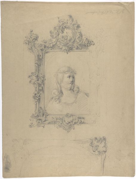 Editor: Here we have Karl Ballenberger's "Halbrunde Wandvorlage mit Cherubim-Konsole," a pencil drawing on paper. It seems to depict a cherubic figure, perhaps a design for a carved architectural element. The fine lines create a very subtle sense of depth, almost like a ghost. What catches your eye when you look at this? Curator: Initially, it’s the technical facility. Note the rigorous depiction of form through delicate, yet assured pencil strokes. The modulation of light and shadow, achieved with such restraint, speaks to a deep understanding of structure and volume. Observe how the artist employs hatching and cross-hatching not merely to render tone, but to define the very architecture of the cherub and its console. Editor: That’s a good point. The hatching does feel very controlled. How do you think this drawing functions as a design for carving? Curator: The drawing's lines meticulously map the surfaces of the sculpture, giving it volume. By describing planes and edges this carefully, Ballenberger essentially provides a codified set of instructions, almost a blueprint, for the artisan tasked with translating this two-dimensional rendering into three-dimensional reality. What is your impression of the negative space? Editor: The negative space is quite striking. It amplifies the cherub's contours. I see now how important the careful application of shading is to the illusion of depth. Curator: Precisely! This rigorous formal analysis reveals Ballenberger's primary interest is not in emotive expression but in the objective representation of sculptural form. Editor: So, focusing on technique first allows us to understand the work's purpose and appreciate Ballenberger's skill, even if it is just a study. I might have overlooked that initially. Curator: Indeed. Focusing on intrinsic elements provides a framework to unpack any piece’s construction, and appreciate the artist's craftsmanship.