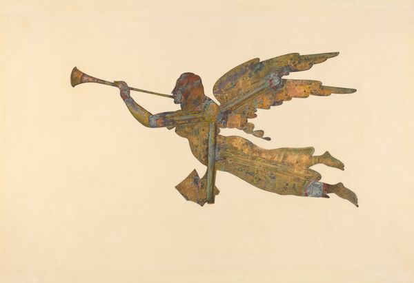 Eric Mose made this copper Weather Vane Finial, sometime during his lifetime, 1905 to 2005. At first glance, it’s easy to appreciate the craftsmanship in this depiction of an angel sounding a trumpet. But consider its original function: mounted high, exposed to the elements, and pivoting with the wind. Historically, weather vanes weren't just functional; they carried social meaning. In agrarian societies, predicting weather patterns was crucial, and these objects took on a semi-sacred role. Angels, in particular, weren’t merely decorative, they were seen as divine messengers, linking everyday life to larger cosmic forces. To understand this piece fully, we’d look at the cultural history of weather divination, the changing roles of religious iconography, and the vernacular art traditions from which Mose was working. By situating this weather vane in its social and institutional contexts, we reveal its broader cultural significance.