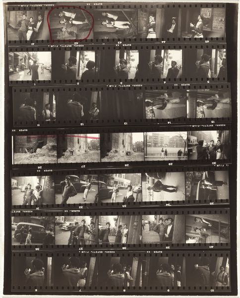 Robert Frank captured these frames on a sheet of Kodak safety film. It's a simple, readily available material, but one that allowed him to crystallize fleeting moments. Look closely. The images are arranged in strips, revealing the process of selection and sequencing that's so crucial to photography. The black and white film amplifies the starkness and grain, lending a raw, immediate feel. The high contrast and deep shadows create a sense of mystery, yet also, a sense of everyday truth. The social context here is essential: Frank documented slices of life, offering candid glimpses into the human condition. This work, like much of his output, pushes against traditional boundaries of art, elevating the mundane to the level of art. This is less about the photograph as precious object, more about what it can tell us.