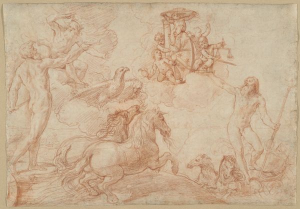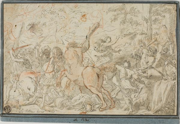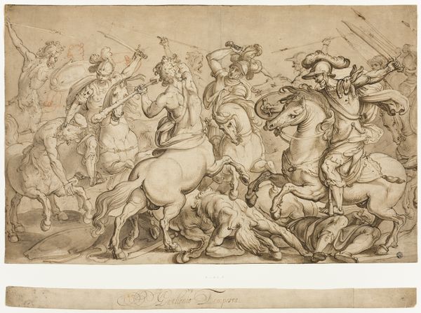 Antoine Caron rendered these Ancient Roman Warriors riding into battle with pen and brown ink in the 16th century. The imagery of the Roman Empire—a symbol of power, order, and civilization—has echoed through the ages, resurfacing in various forms to legitimize authority and evoke a sense of historical continuity. The standards carried by the warriors are particularly striking. These emblems, topped with symbolic figures, are the focal point of the armies, a tradition with roots in ancient cultures and a persistent echo in military iconography. Their evolution from simple markers to elaborate symbols of state mirrors the transformations of power itself. We see this imagery in works from antiquity, from the Renaissance, and even in modern art. They tap into the collective memory of Rome's grandeur, evoking a visceral connection to the past. The emotional intensity of the battle scene, with its dynamic composition and determined figures, is a powerful force that speaks to the enduring human fascination with conflict and conquest. The use of Roman symbols evolves, takes on new meanings, and resurfaces in different contexts, each time carrying the weight of its past.