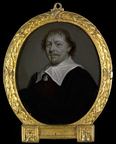 Arnoud van Halen captured Johan van Nijenborgh in this intimate portrait. Enclosed within a gilded frame adorned with laurel leaves, symbols of victory and honor, Nijenborgh gazes out. The laurel, a classical motif, reappears throughout art history. From ancient Greek wreaths bestowed upon triumphant athletes to Renaissance paintings crowning poets and heroes, it speaks of achievement. Yet, its presence here carries a more nuanced weight. The laurel's cyclical journey through time reveals a shifting understanding of heroism; in Nijenborgh's era, it signifies not martial prowess, but intellectual and artistic accomplishment. Consider the subtle psychological impact of the laurel. Its association with glory taps into our collective desire for recognition, a deep-seated human drive. This desire transcends time, connecting us to the past through shared symbols of ambition and remembrance. The portrait invites us to contemplate our own aspirations, reminding us of the enduring human quest for lasting recognition.