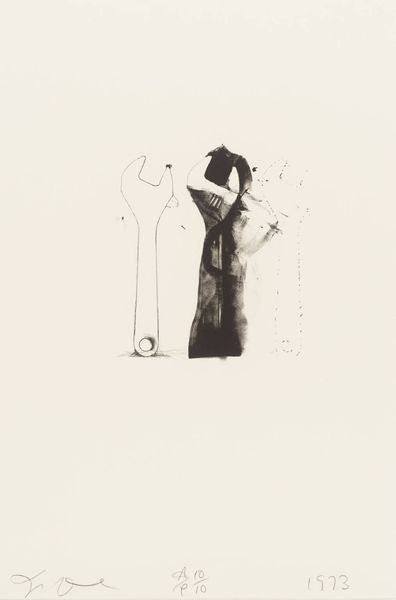 Editor: This program for the "Closer" Jazz Concert in Kyiv, created in 2018, features watercolour and line drawing. It's quite ethereal and a little haunting, with the figures almost dissolving into the background. What do you make of it? Curator: Immediately, I'm struck by the figures themselves. The one on the right, whose head appears to be an abstract cello or bass, swathed in musical notation. Consider how this visual symbol resonates with ancient ideas of music as a divine or supernatural force. What emotions do these symbols evoke in you? Editor: I feel a sense of the surreal, almost like a dream state, perhaps? Curator: Exactly. Think about the cultural memory associated with jazz—improvisation, freedom, but also sometimes, melancholy. The ambiguous form and dissolving nature might represent the ephemeral nature of a live performance. And then we have the female figure to the left; the two characters almost form a hybrid. The flute she carries, bisecting the two characters, is this a symbol of concord? Editor: That's an interesting interpretation! I hadn’t considered the flute as a uniting element, but now that you mention it, it does seem to bridge the two figures. Curator: Yes, it could signify harmony between seemingly disparate elements. This concert poster then becomes not just an advertisement but a visual poem on music's power to connect. Don't you think? Editor: I agree. Thinking about it that way adds so much depth. Thanks! Curator: My pleasure. The enduring power of symbols never fails to fascinate.