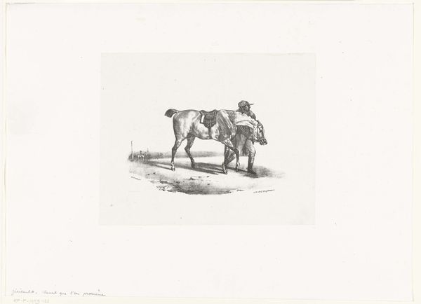 David Alphonse de Sandoz-Rollin made this drawing of a grazing calf and plants, using pen in gray. De Sandoz-Rollin lived in an era marked by evolving social structures and nascent industrialization. As we observe this calf in its quiet moment of grazing, consider the broader narratives of pastoral life that were often romanticized, yet stood in stark contrast to the realities faced by many. This drawing exists within a tradition of landscape art that can often erase the social and economic relations, particularly labor. What is included and excluded when the land is represented, and who is able to own land? The simplicity of this image invites reflection on our relationship with nature and how we represent it. It evokes a sense of calm, yet subtly reminds us of the complex histories embedded within seemingly bucolic scenes.