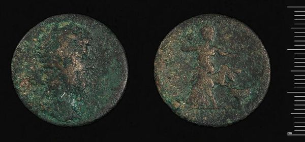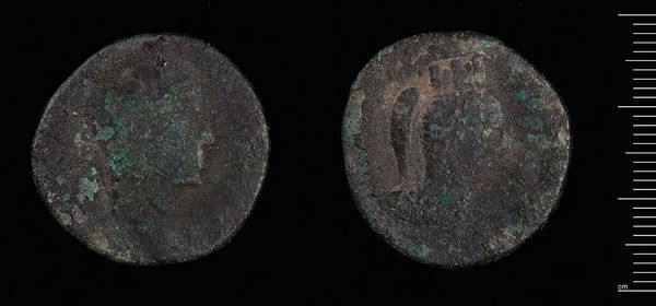 Curator: Looking at this coin of Arados under Elagabalus, I immediately think about circulation, trade routes, and imperial power. It’s a tangible link to a specific moment. Editor: The oxidation is striking; that verdigris speaks volumes about the slow material transformation wrought by time and environmental factors on this base metal. Curator: Absolutely. It's more than just metal; it's a political statement. This coin would have been handled by countless people, legitimizing Elagabalus's reign through everyday transactions. Editor: And consider the labor – the mining, smelting, and striking of these coins. A whole economic system supported the production of these small objects. Curator: How the image on the coin presents authority is interesting, influencing and reinforcing cultural beliefs of the era. Editor: Exactly. A coin like this offers a ground-level view of Roman imperial economics and material culture that textbooks often overlook. Curator: A point well made, highlighting how the role of the materials and production intersect with the coin's historical impact. Editor: Indeed, a fascinating look at history through its materiality.