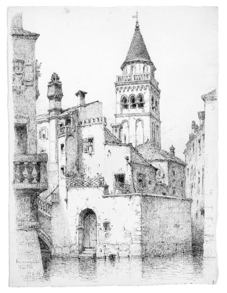 Andrew Fisher Bunner made this drawing of Rio e Campanile San Martino in Venice using graphite on paper. The drawing depicts a quiet canal scene, dominated by the bell tower of San Martino. We can understand this work in the context of the late 19th century, a period when Venice was both a popular destination for tourists and a subject of artistic fascination. Bunner's choice to focus on the everyday, rather than the monumental, aligns him with a broader artistic trend towards realism and an interest in the lives of ordinary people. In terms of social critique, the drawing doesn't overtly challenge existing social norms. However, its very existence speaks to the democratizing influence of art institutions like museums, which made works like this accessible to a wider public. Understanding this drawing involves delving into the history of Venice, exploring the role of art in shaping perceptions of the city, and considering the social and economic forces that made Venice such a popular subject for artists in the first place.