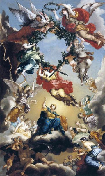 Does this oil painting remind you of any famous artist? 🤔 If you said Raphael, you're definitely not wrong! 'The Ascension of Christ' was painted around 1498 by the Italian Renaissance artist Pietro Perugino. Perugino actually taught and trained the young Raphael, who went on to be known as one of the great masters of the High Renaissance. 🖌️ This painting might look busy at first glance. Let's break it down! 👇 The symmetrical composition is organised around the central figure of Christ, who dominates the upper half of the panel. He is surrounded by angels who glide among the clouds. Through the use of pastel colours and graceful poses, Perugino has built a tone of divine peace in the upper section of the painting. The angels are dressed in flowing robes and play classical instruments. This space represents heaven, while the area below represents earth. 🌍 On the grass stand the twelve apostles, alongside The Virgin Mary in the middle. She wears her iconic shades of blue and red, which symbolise purity and love. They all gaze upwards, directing our line of vision to the serene figure of Jesus. Jesus himself is depicted inside an oval shape known as a 'mandorla'. Thirteen cherubs encircle him. 👼 This work is rich in iconography, yet also includes advanced artistic techniques such as aerial perspective. This can be seen in the mountains of the background landscape. Do you notice how the colours get gradually paler to suggest that some mountains are further away? Along with Michelangelo and Leonardo, Perugino's student Raphael would later optimise the use of aerial perspective. 🏔️