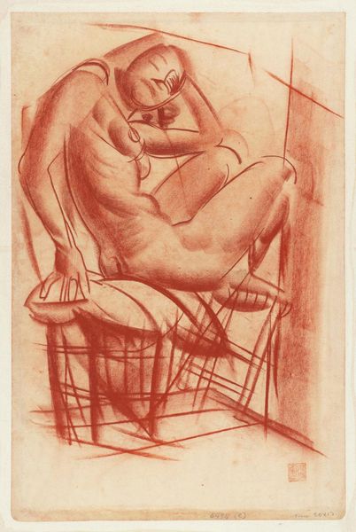 Curator: This is Max Beckmann's "The Embrace," an undated etching, found in the Harvard Art Museums collection. There's an undeniable tension in the linework, wouldn't you agree? Editor: Absolutely. The angularity and the stark black and white give it a feeling of unease, despite the intimate subject matter. I'm immediately struck by the visible labor involved in its creation. Curator: Consider its social context; Beckmann’s work often reflects the anxieties of postwar Germany. The embrace, normally comforting, is rendered with an unsettling rawness. Editor: The clock looming in the background reinforces that anxiety, doesn't it? The printmaking process itself, the labor of etching, feels like a metaphor for the pressures of that era. Curator: Museums hold pieces like this as documents of social experience, illustrating how political turmoil affects intimacy and personal connection. The politics of imagery reflect the artist's time. Editor: And ultimately, the materials—the plate, the ink, the paper—become witnesses to that historical weight, transforming what would otherwise be a simple moment of affection into a study in material consequence. Curator: It leaves me pondering the role art plays in both mirroring and shaping our understanding of tumultuous times. Editor: Agreed. The physicality of the print and the directness of its lines remind us of the very real human labor involved in making meaning out of chaos.