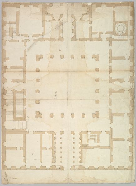 Curator: Here we have a drawing from the High Renaissance: a study of the Palazzo Spada, also known as the Palazzo Capodiferro, created between 1500 and 1560, by an anonymous artist. It is rendered in ink on paper, and showcases meticulous line work to detail this architectural elevation. Editor: My first impression is one of quiet aspiration. The detailed facade hints at the power and wealth within, yet the drawing's restrained lines evoke a sense of poised, almost melancholic grandeur. Curator: I think you've pinpointed an important tension present at the time. Italian Renaissance architecture was deeply connected to the social and political power of families, and institutions but also influenced by intellectual developments related to Classicism, mathematics, and philosophies about how the world could function. Structures like the Palazzo Spada visualized the ideals of beauty, order, and stability sought by elite society. Editor: Absolutely. Looking at the details, each window, each sculpted figure in its niche, every decorative flourish... They are not just aesthetic elements; they're symbols loaded with meaning. The symmetry speaks to a desire for harmony and divine order. We're essentially looking at a built manifestation of a carefully constructed worldview. It makes me think about the Roman ideals it tries to resurrect, and the weight of those ideals placed on individuals within that structure. Curator: Right, and considering this palace as a stage, what performances of identity were made possible—or impossible—within its walls? Who was allowed to move freely? Whose presence was felt even if they remained unseen? How was domestic power negotiated in those interiors, which included men, women, children, and servants? The physical organization of space mirrors the organization of social power. Editor: This drawing, for me, transcends architectural representation; it functions as a symbolic portrait of its era. Its delicate lines carry both the ambitions and anxieties of Renaissance culture, preserved on fragile paper across centuries. Curator: Indeed. Studying this elevation, we're invited to reflect on how architecture both shapes and is shaped by the sociopolitical forces of its time—and to imagine whose lives are inscribed within the stone.