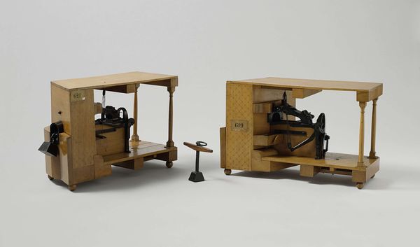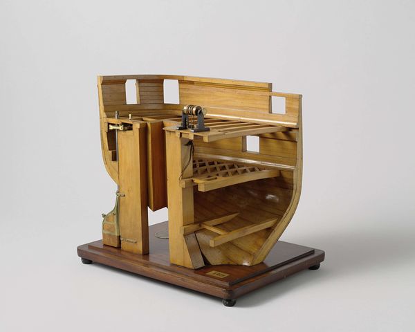Editor: Here we have "Model of a Trunk Engine," made in 1855. It looks like a cross-section of a ship, with the engine on display inside the hull. The materials seem to be primarily wood and metal. What symbols do you see in this work? Curator: The engine, rendered with such painstaking detail, pulses with symbolic energy. It's not merely a feat of engineering but also a potent representation of progress, a symbol of human ingenuity conquering the natural world. Look at how the delicate wooden frame cradles the powerful engine. Editor: It’s interesting to think of progress that way. How would viewers at the time have interpreted those symbols? Curator: For them, this wasn't just an engine model; it represented a dramatic shift in societal power. Think about the historical context: the burgeoning industrial revolution, the Victorian obsession with invention and control, a prevailing sentiment that technology could solve any problem. Editor: So the engine embodies this sense of control and optimism? Curator: Precisely! Notice also the juxtaposition of the raw mechanical elements against the almost classical, architectural lines of the frame. It speaks volumes about how humans perceive our role in the environment and in this grand scheme of things. Does that resonate with you? Editor: It does, actually. It feels like a bold statement about humankind shaping the world. This changes the way I initially viewed the artwork. Curator: And what I’ve found so compelling over time is recognizing cultural memory: this continuity and connection between progress, art, and industry. It’s amazing what stories a single object can tell. Editor: I agree, reflecting on the past gives a new dimension to looking at this piece. I'll definitely be thinking more about those layers of meaning.