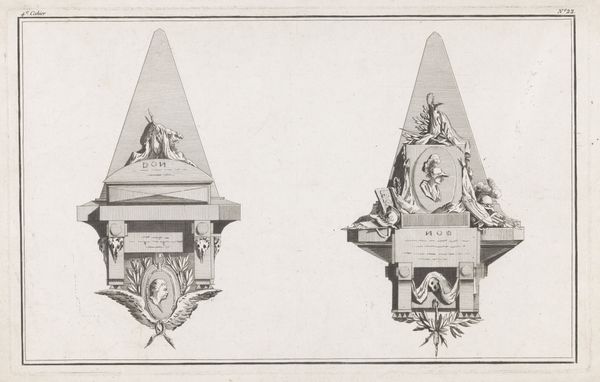 Editor: Here we have "Monument in honor of Middelburg's new harbor, 1817", an ink, pencil, and watercolor drawing, probably a study, by an anonymous artist. The starkness of the monument’s design, rendered in such pale tones, gives it a very formal, almost austere, feel. What strikes you about it? Curator: The monument, designed in the Neoclassical style, offers a fascinating glimpse into the power dynamics of the time. Given its purpose, how do you think the construction of a new harbor and the erection of such a monument reflect the prevailing social and political ideology of early 19th-century Netherlands? Editor: I see what you mean. The clean lines and the almost severe lack of ornamentation, along with its sheer size, do project power. Was Neoclassicism typically used to convey that kind of message? Curator: Absolutely. Neoclassicism, with its references to ancient Greece and Rome, was often employed to evoke notions of civic virtue, order, and imperial authority. The monument isn't merely celebrating a new harbor; it's also subtly reinforcing the legitimacy and might of the ruling monarchy, especially after the Napoleonic era. How might this connect with the monument's dedication to the King? Editor: So, the monument becomes a statement about the King’s success in rebuilding the Netherlands after a period of conflict, connecting him to the glory of past empires? Curator: Precisely. Consider, too, the location of the monument at the harbor itself. The harbor, a vital artery of commerce and naval power, would further amplify this message, integrating the idea of royal authority with economic and military strength. Don't you think there is something almost propagandistic about it? Editor: That’s an interesting way of putting it. I had not really thought of it that way. This was much more than just a pretty picture to hang on the wall. Curator: Exactly. This drawing provides us with insights into how art can become embedded in the political and social landscape. I'm glad we explored this together.