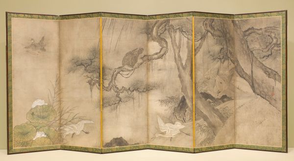 Kano Tan'yū created *Eight Views of the Xiao and Xiang Rivers*, using ink and color on paper, sometime in the 17th century. The landscape is subtly composed, with pale washes of ink creating the illusion of great distance. The paper support has a warm tone that contrasts with the darker ink. Note the way in which the artist manipulated the ink to produce various effects of shading and texture. This wasn't just a matter of technique; it was a highly disciplined practice with deep cultural significance. Kano Tan'yū was part of a lineage of painters who served the shogunate, and this screen would have been made in a professional workshop, with assistants preparing the materials and carrying out some of the labor. While the master artist had ultimate responsibility for the quality of the work, the final product reflects a collective effort. Considering the materials and the processes, alongside the social context, adds to our understanding of this beautiful artwork, and the artistic traditions out of which it was created.