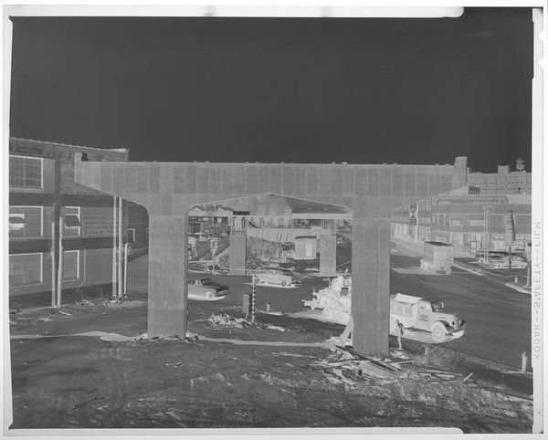 Editor: This photograph by John Deusing, titled *Untitled (exterior view of building with cars out front)*, shows a stark, almost unsettling scene. What do you see in this image, given its historical context? Curator: Well, the image's power lies in its depiction of everyday urban life and how these scenes contribute to our understanding of socio-economic conditions. Notice the "Sale Rent" sign – what might that suggest about the local economy at the time? Editor: Perhaps a period of decline or transition? Were such images used to influence public perception or even policy? Curator: Absolutely. Photography during this period became a tool for both documentation and social commentary, shaping public opinion on issues such as urban decay and economic hardship. It makes you wonder about the narrative the artist is trying to convey. Editor: It certainly changes how I view seemingly simple photographs.