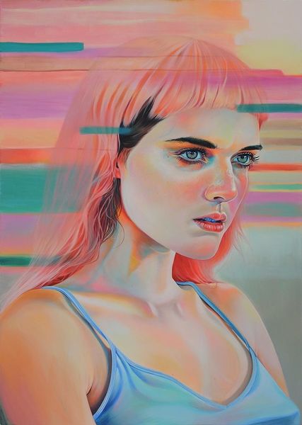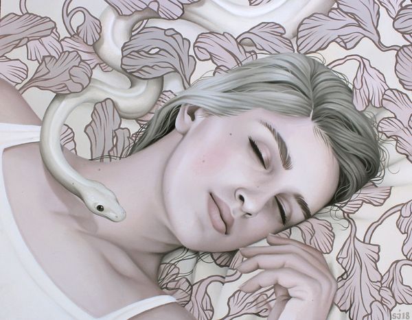 Martine Johanna created this work, called Momentum, during the 21st century. Her art exists in a unique space, reflecting the tension between lived experience and idealized image, particularly as it pertains to women. The subject's face is framed by her hands as she looks down, eyes closed; one might interpret this as a gesture of introspection or perhaps even shielding herself from the world. Johanna’s work often examines the multifaceted nature of feminine identity. She develops alternative narratives, diverging from traditional representations of women. She explores themes such as vulnerability and strength. The pale color palette, with its soft pinks and whites, enhances the dreamlike quality of the piece, inviting contemplation on the transient nature of emotions and the ever-shifting states of being. Momentum captures a deeply personal moment. It encourages a broader dialogue about identity, representation, and the emotional landscapes we all navigate.
