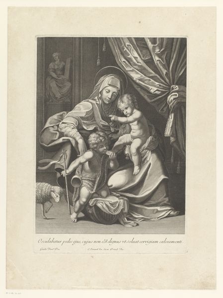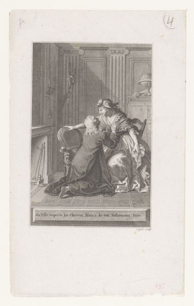 Editor: This is Eugène Delacroix's "Hamlet Attempts to Slay the King." I'm struck by Hamlet's hesitation, the tension palpable in his stance. What can you tell me about the symbolism here? Curator: Delacroix uses Hamlet's suspended action to explore the weight of revenge. The sword, a phallic symbol, represents Hamlet's power, yet his inability to act speaks to his internal conflict. Consider the King's posture, hunched in prayer – is he truly repentant, or is this a performance? Editor: That's fascinating. The King's vulnerability certainly complicates the narrative. Curator: Exactly! Delacroix captures the psychological complexity, revealing the enduring power of symbolic imagery. Editor: I see how cultural memory shapes our understanding of the play, even in this single image. Thanks!