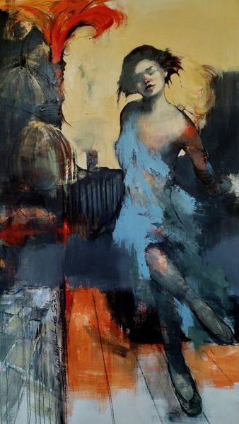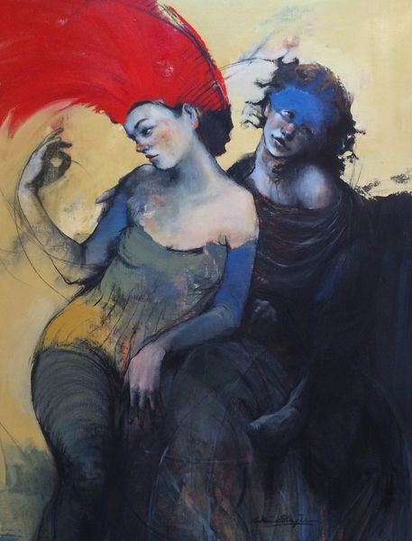 Cathrine Edlinger-Kunze created this painting "Not only for the humans," sometime in the 20th century. The interplay of textures and the contrast between the soft, muted tones of the woman and the bold, vibrant hues of the parrot create a captivating visual experience. The artist destabilizes conventional portraiture. Edlinger-Kunze disrupts the expected hierarchy between human and animal, as each figure vies for attention through distinct formal qualities. The woman’s form, draped in a harlequin-patterned garment, introduces a semiotic layer that evokes themes of masquerade and shifting identities, challenging fixed meanings. The brushstrokes function within a contemporary context, reflecting broader artistic concerns around perception and representation. Notice how the artist uses the texture and color to challenge established meanings, encouraging us to reconsider our relationship with the natural world and the categories we impose upon it.