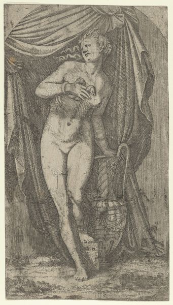 Jacob Binck created this engraving, "Eve with the Serpent", in the 16th century, a time when religious narratives were often used to reinforce societal norms. Binck's portrayal of Eve is particularly fascinating when considering the era's views on women. She is depicted as the pivotal figure in the fall of humanity, a representation that reflects the period's patriarchal structure and the association of women with temptation and sin. The forbidden fruit, offered by the serpent, symbolizes not just disobedience, but a disruption of the established order. This image invites us to consider the dynamics of gender and power, as well as the emotional complexity of Eve's choice. Did she realize the impact of her decision? Was she driven by curiosity, manipulation, or perhaps a desire for knowledge? What does it mean to bear the weight of this story? Binck's "Eve with the Serpent" is a reflection on the historical and cultural narratives that have shaped our perceptions of women, sin, and knowledge.