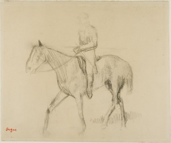 Johannes Tavenraat made this drawing of a horse with blinkers in the Netherlands, likely sometime in the mid-19th century. It's a simple sketch in graphite on paper, but it speaks volumes about the social and cultural context of the time. The image creates meaning through visual codes and historical associations. The blinkered horse, a common sight in 19th-century Europe, was a symbol of labor and control. Horses were essential for agriculture, transportation, and even warfare. The blinkers themselves represent a limitation of vision, forcing the animal to focus solely on the task ahead. Consider the social structures of the time. Was Tavenraat commenting on the Industrial Revolution and the way it mechanized labor, reducing both humans and animals to mere cogs in a machine? Was he critiquing the institutions that perpetuated this system? These are questions that historians might explore through further research into the economic and political conditions of the Netherlands during this period. By examining such works, and understanding their social and institutional context, we can gain a deeper appreciation of their historical significance.