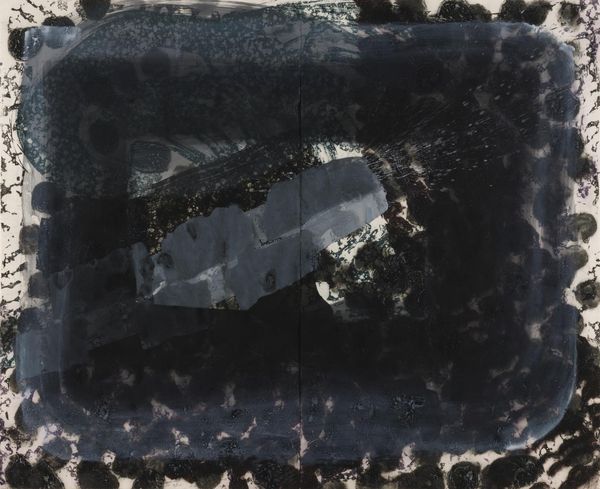 Editor: John Divola's "Zuma #60," a gelatin-silver print from 1978, presents a rather unsettling scene. It’s all dark hues and fragmented imagery. The geometry feels chaotic, like a space marked by both presence and absence. How do you interpret this work? Curator: The beauty of Divola’s Zuma series lies in its subversion. It’s not just about abandoned buildings; it's about disrupting conventional notions of landscape photography and our expectations around who has access to these spaces. Consider the socio-political context of the late 70s in Southern California – economic shifts, urban decay, and cultural anxieties. How do these issues manifest themselves, perhaps, in the layers of graffiti and abstract airbrushing Divola adds to the photograph? Editor: So the artificial additions are significant. It’s not just documentary. It's like he’s actively engaging with the space, not just passively recording it. Curator: Exactly! He’s intervening, challenging our understanding of authenticity and authorship. This approach makes one question, "Who has the right to represent this space?" and "What stories are usually left untold in mainstream representations of similar settings?" Editor: It’s interesting to think about the power dynamics at play. The decay in the architecture highlights a tension with Divola's artistic interventions. He layers meaning onto existing narratives, like giving a voice back to the marginalized spaces. Curator: Precisely. In the 70's there was more cultural emphasis on claiming neglected or historically significant spaces, in the case of Black and Hispanic communities. Think about the context of space ownership. The artwork becomes a document of more than a ruined space, it also documents layers of history, culture and imposed intervention. Editor: That reframes my understanding completely. It's a commentary on social power and reclamation. I initially perceived emptiness, but I see layered meaning now. Curator: The emptiness is the canvas for us to explore that loaded history.