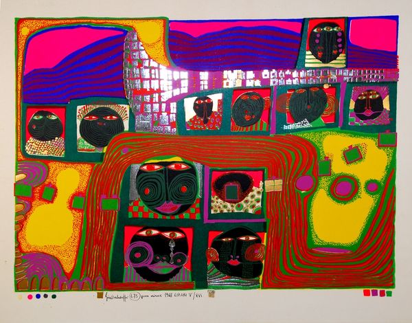 Editor: This untitled piece is by Dieter Roth, and is part of the Tate collection. The flatness and bold colors create a fascinating tension. What strikes you most about the composition? Curator: The interplay of figure and ground is compelling. Note how Roth employs color not to represent reality, but to construct a visual system where forms are defined by their chromatic relationships. What does that evoke for you? Editor: I suppose it highlights the artificiality of the image, its construction. Curator: Precisely. Roth subverts our expectations of pictorial space, inviting us to consider the artwork as a self-contained system of signs, rather than a window onto the world. Editor: That's a different way to look at it than I usually would! Curator: Indeed, and hopefully a useful perspective on Roth's unique approach.